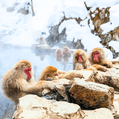 Chiuderemo in bellezza tra le Alpi innevate di Nagano, tra templi secolari e le famose scimmie delle nevi intente a rilassarsi negli onsen…ma noi faremo di meglio!