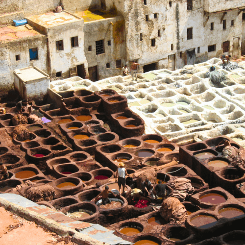 Visiteremo la medina di Fes, la città vecchia, caratterizzata da un vero e proprio labirinto di strade. Vedremo il Palazzo Reale con le sue porte dorate e non mancherà la visita alla famosa Tanneries di Chaouwara, la più grande conceria della città costruita nell’undicesimo secolo.