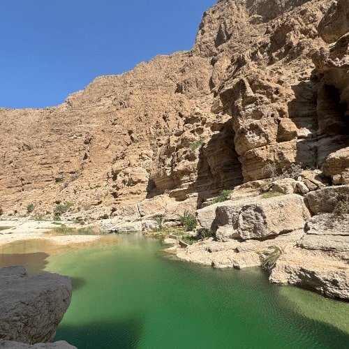 Questa mattina partiremo presto per poter visitare un’altro wadi prima di dirigerci verso il deserto. Con una breve passeggiata arriveremo alla prima piscina dove potremo rinfrescarci! Raggiungeremo poi la piscina finale con una piccola camminata in mezzo al corso del fiume.