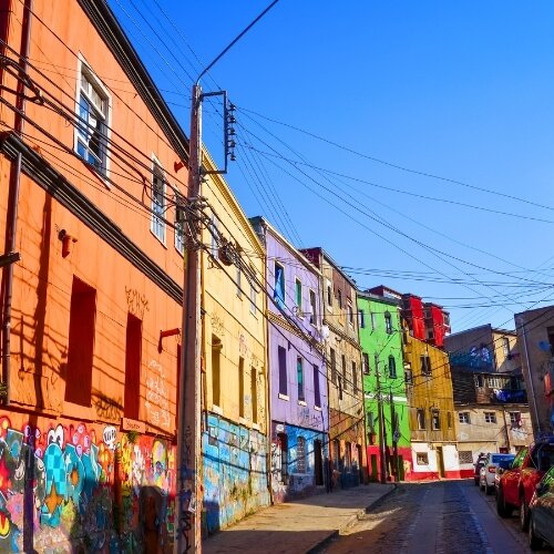 La nostra prima tappa sarà una Supernova di colori, con case variopinte che si arrampicano sulle colline, le vie con i murales e vecchie funicolari scricchiolanti. Inizieremo il nostro viaggio visitando i quartieri più iconici come Cerro Alegre e Cerro Concepción, faremo una capatina su Paseo Atkinson dove si ha una vista panoramica sull’oceano e prenderemo uno degli ascensori storici per raggiungere il porto.