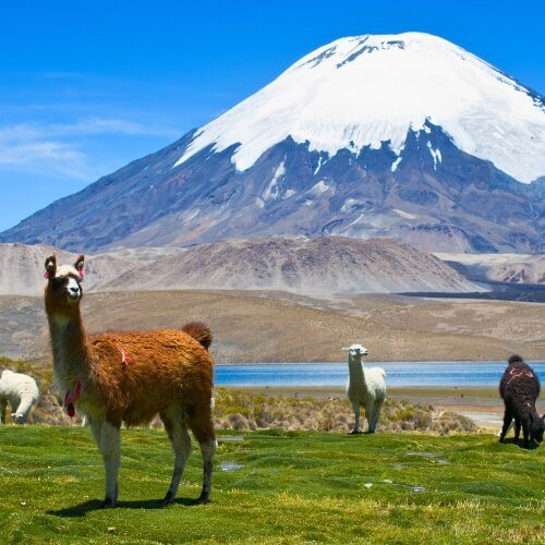 Dopo circa 1.30h arriveremo nel Lauca National Park (4500 mt), dichiarato Riserva Mondiale della Biosfera UNESCO e rinomato per la fauna andina formata da vicuñas, lama, alpaca, ñandú e condor. Il parco ci regalerà delle viste spettacolari e paesaggi a perdita d’occhio. Ma non basterà l’altitudine a lasciarci senza fiato, la bellezza del Lago Chungará con il vulcano Parinacota (6380 mt), ci manderà senza dubbio ko!