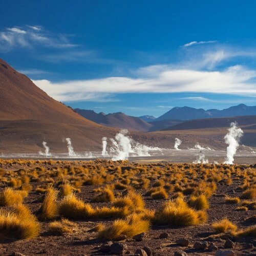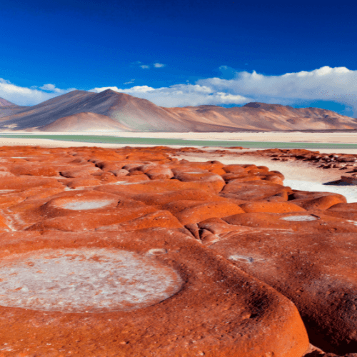Attraverseremo deserti con specchi d’acqua rosa e lagune cristalline, ci lasceremo incantare dai riflessi di Piedras Rojas, dai tramonti nella Valle della Luna e dai geyser del Tatio.