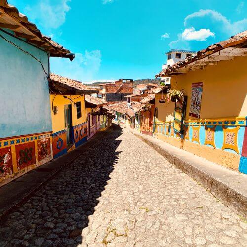 Terminata la visita ci sposteremo nel centro storico di Guatapé! Non solo tutti gli edifici sono colorati, ma le facciate delle case sono a loro volta decorate con i famosi zócalos, bassorilievi dipinti che raccontano mestieri, animali e scene di vita quotidiana. Una vera e propria tavolozza di colori a cielo aperto!