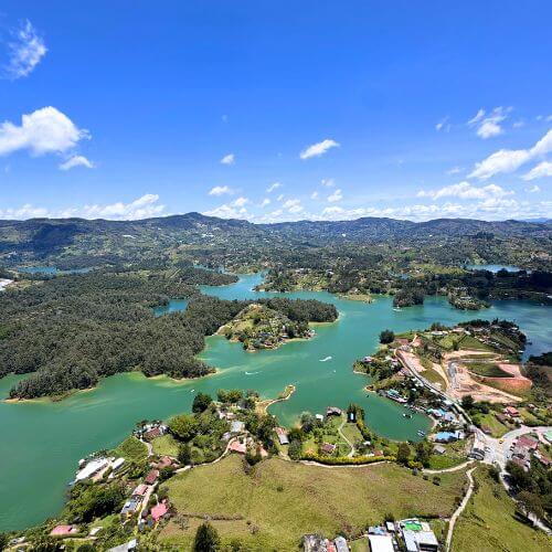 Con un paio di ore di auto oggi raggiungeremo Guatapé, un piccolo gioiello della Colombia famoso per la Piedra del Peñol, un imponente monolite di 200 metri che si può scalare. Affronteremo i suoi 740 scalini con calma e saremo premiati da una vista spettacolare sul lago artificiale costellato di isolotti e penisole che sembrano disegnati a mano!