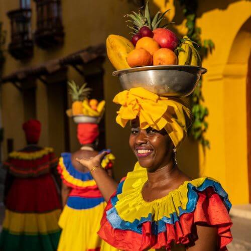 Lasciati i bagagli in hotel andremo subito alla scoperta partendo da quello che è considerato il quartiere più bello: Getsemanì. Qui troveremo ad accoglierci le Palenqueras, le icone viventi della Colombia, vestite con i colori della Colombia e con le ceste di frutta in testa. Sarà un susseguirsi di murales, bandierine e ombrellini sospesi sulle vie, edifici colorati ed incredibili gallerie d’arte!