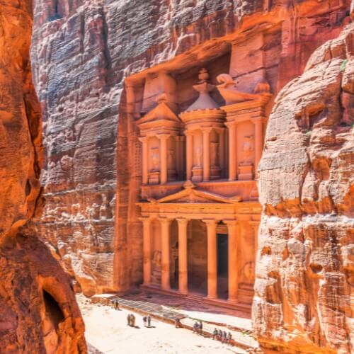 Entreremo nel sito dal percorso classico, camminando nel Siq, lo stretto canyon scavato nella roccia che prepara lentamente allo spettacolo finale. All’improvviso, davanti a noi, comparirà il Tesoro: la facciata simbolo di Petra, la sua porta monumentale! Con la nostra guida esploreremo il sito tra tombe reali, templi, il teatro nabateo e l’Alto Luogo del Sacrificio, scoprendo la storia e i segreti di questa città scolpita nella pietra. Chi avrà ancora gambe potrà spingersi fino al Monastero, uno degli angoli più spettacolari e meno affollati di Petra, raggiungibile dopo una salita che ripaga ogni passo.