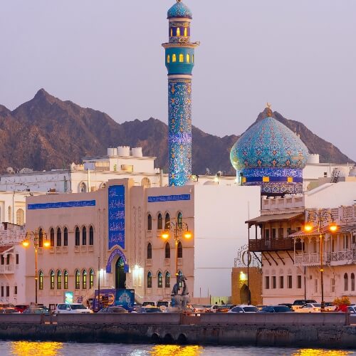 Proseguiremo poi verso la Corniche di Muscat, il bellissimo lungomare che si affaccia direttamente sul Golfo dell’Oman. Da qua entreremo nel cuore pulsante della capitale: il Mutrah Souq. Un labirinto di viuzze tra incenso, spezie, gioielli e ceramiche.