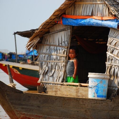 Dopo pranzo raggiungeremo le rive del grande lago Tonle Sap per visitare un villaggio galleggiante di pescatori. Tonle Sap rappresenta il cuore pulsante della Cambogia con i suoi 3 milioni di abitanti ed è stato classificato ufficialmente come Riserva della Biosfera per l’elevata biodiversità di flora e fauna. Ci aspetteranno alte palafitte colorate, pescatori su imbarcazioni scarcassate e ragazzini che giocano in acqua.
